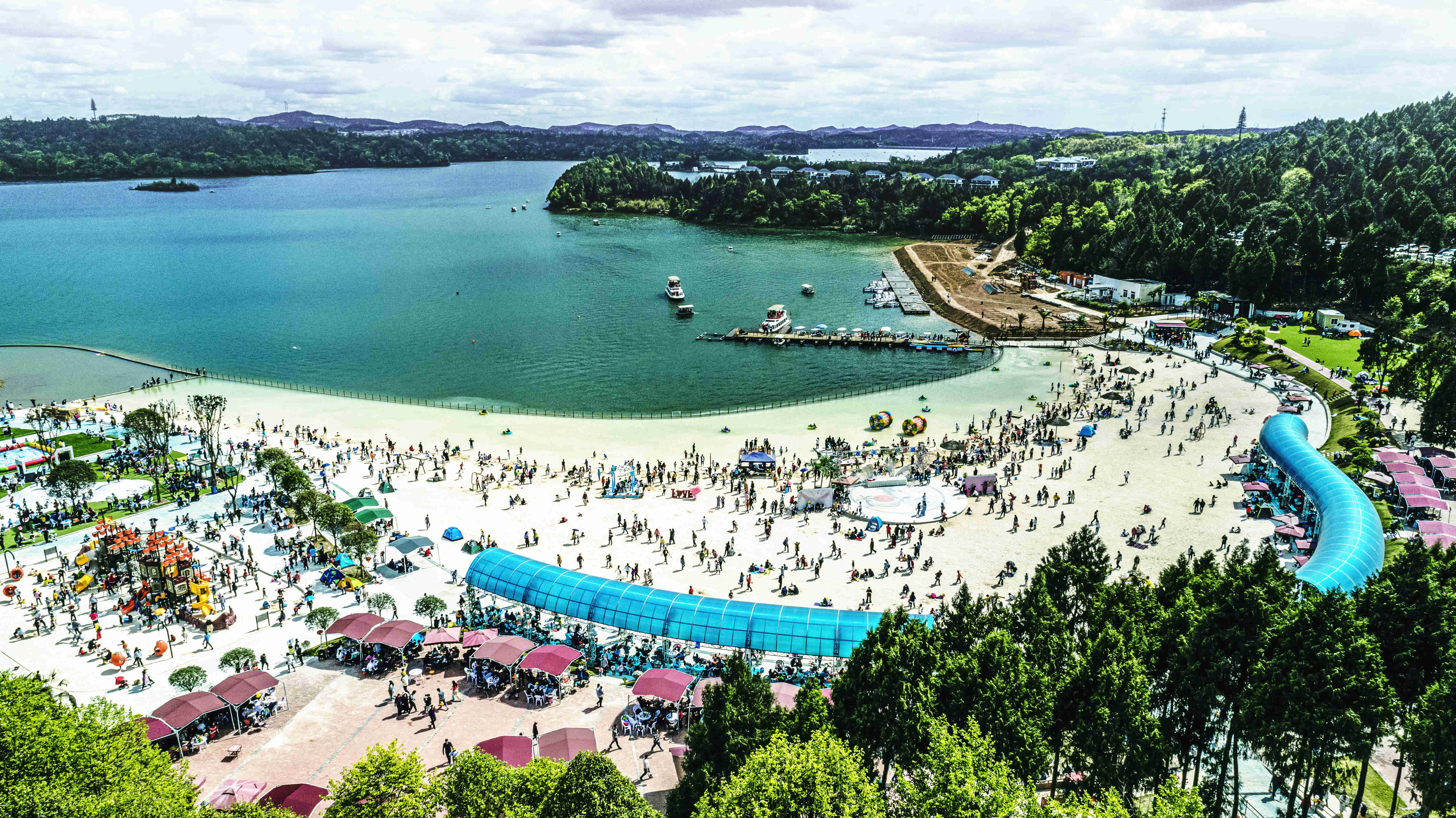 綿陽嘉成文化旅游有限公司是一家旅游開發(fā)公司,成立于2019年。 親水灣沙灘樂園項(xiàng)目由綿陽嘉成文化旅游有限公司開發(fā)運(yùn)營,位于國家級(jí)水利風(fēng)景區(qū)——綿陽市仙海水利風(fēng)景區(qū),距綿陽市區(qū)15公里,車程約半個(gè)小時(shí),是依托沉抗水庫建設(shè)的仙海風(fēng)景區(qū)重點(diǎn)旅游項(xiàng)目。進(jìn)入仙海風(fēng)景區(qū)上坡向左進(jìn)入環(huán)湖路前行1000米。項(xiàng)目總占地220畝,其中核心沙灘樂園占地100畝,現(xiàn)建成沙灘休閑、淺灘嬉水、水上運(yùn)動(dòng),親子蹦蹦云、網(wǎng)紅多人秋千、人力過山車、水幕秋千、團(tuán)隊(duì)拓展等項(xiàng)目十余個(gè),還開設(shè)有特色中餐、仙?;疱侓~,自助燒烤等飲食項(xiàng)目。 近觀青山綠水,遠(yuǎn)眺碧波蕩漾,清晨朝霞映翠、傍晚水天一色。親水灣沙灘主題樂園有可容納200人的沙灘會(huì)議室和30人的小型會(huì)議室;棋牌室16間; 商務(wù)KTV;餐飲中心可同時(shí)容納300人用餐;篝火晚會(huì)場(chǎng)地等,是婚禮壽宴、同學(xué)聚會(huì)、餐飲娛樂、商務(wù)會(huì)議、拓展培訓(xùn)、家庭親子活動(dòng)的首選之地。